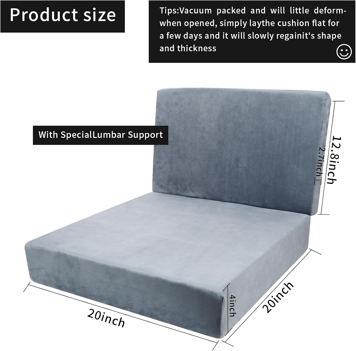 20x20x4 Inch Recliner Cushions for Elderly, Gray Memory Foam Extra Large Seat Cushion, Non-Slip Recliner Cushions with Back Support Cushions, Thick and Supportive Back Lumbar Support