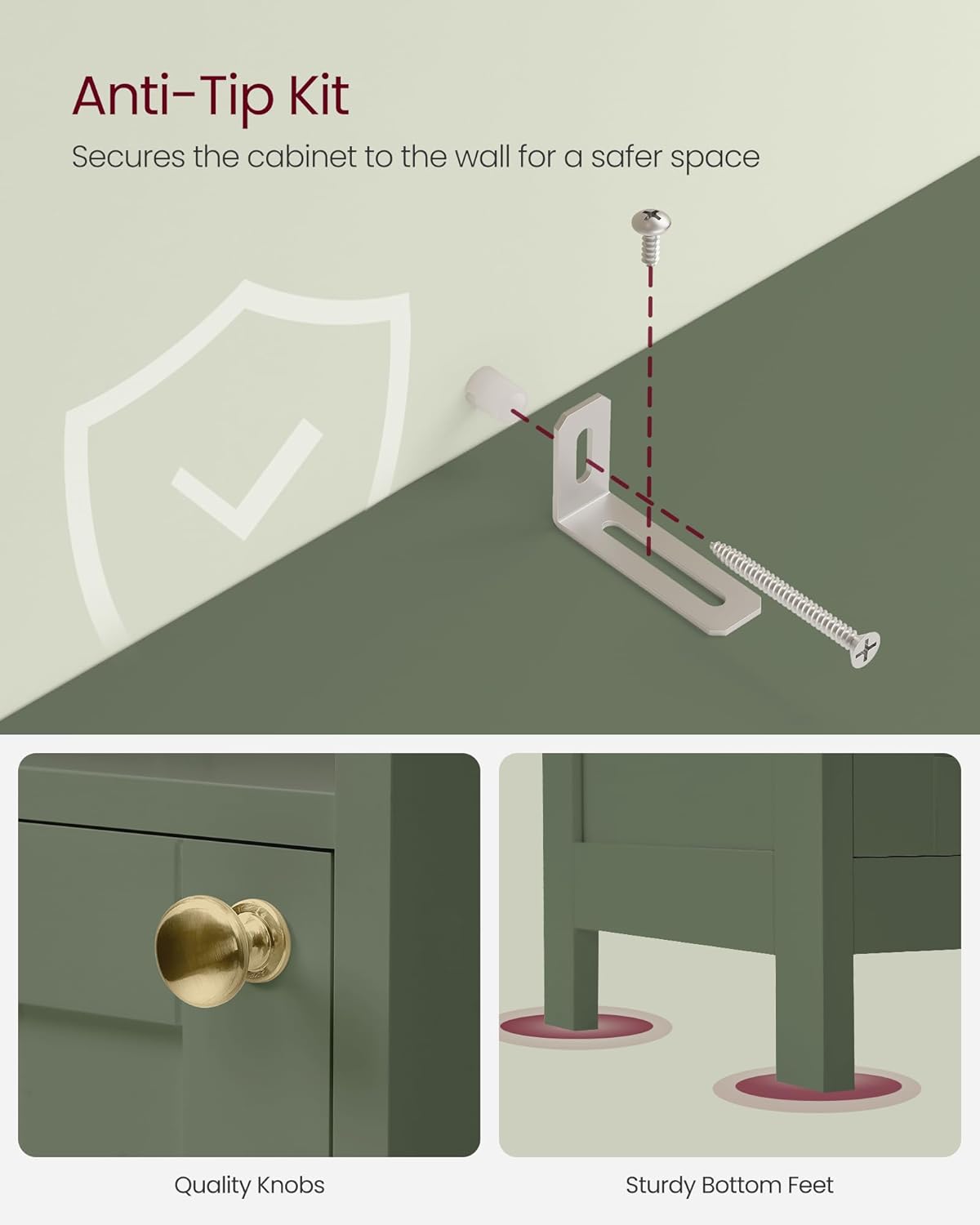 • Easy to Clean, Safe to Use: Crafted with painted MDF, the surface of this storage cabinet is easy to wipe clean. Plus, it comes with an anti-tip kit to attach the tall cabinet to the wall for added stability and safety